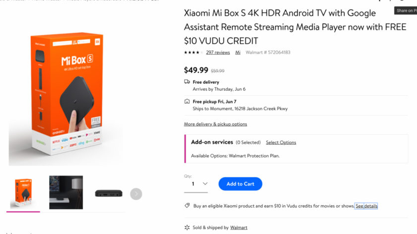 For a limited time, Walmart is offering the Xiaomi Mi Box S for $49.99 ($10 off). Better yet, the retailer throws in $10 Vudu credit with your purchase.