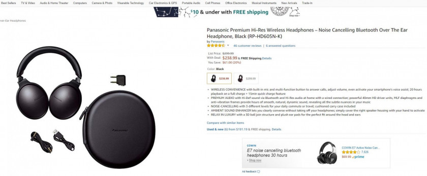 The Panasonic headphone deal includes hi-res active noise canceling headphones which are now available for $61 off, a 20 percent discount. These over-ear wireless headphones provide many of the same features as the Sony WH-1000XM2, including LDAC and aptX HD support.