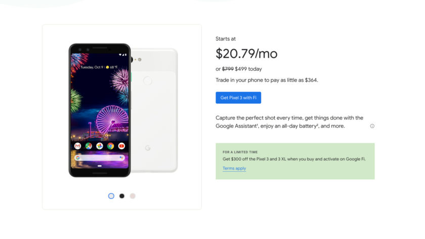 Google Fi’s discount brings the 64GB and 128GB versions of the Pixel 3 down to $499 and $599, respectively. The discount also brings the Pixel 3 XL with 64GB and 128GB down to $599 and $699, respectively.