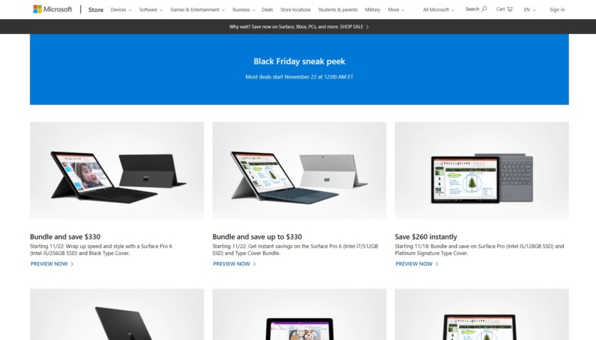Most of Microsoft’s Black Friday discounts begin on November 22 at 12AM ET, though some others begin a little earlier on November 18. Anything you buy on the Microsoft Store comes with free shipping or in-store pickup.